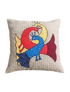 Inspired by the tribal art of Madhya Pradesh, Gond cushions showcase bold colour palettes and dotted patterns that form animals, trees, birds, and abstract forms. Each design is vibrant, expressive, and adds a joyful artistic flair to modern interiors.