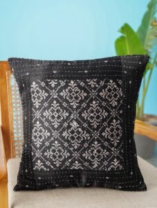 Originating in Bengal, Kantha work uses thousands of running stitches that quilt layers of fabric together. The result is a beautifully textured cushion cover that feels artisanal, homely, and unique. Kantha designs often feature geometric shapes, florals, or story-like illustrations.